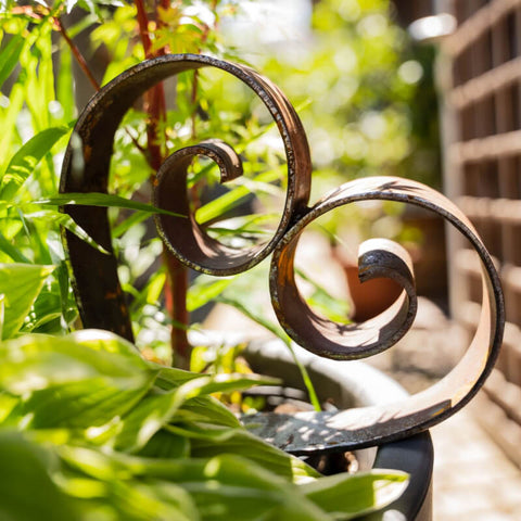 Inmitten von bunter Blumenpracht und sattem Grün setzt Gartendeko aus Metall mit Rost-Patina stilvolle Akzente. Auch auf Balkonen und Terrassen sind sie ein eleganter Blickfang und bestechen durch ihre zeitlose Eleganz.