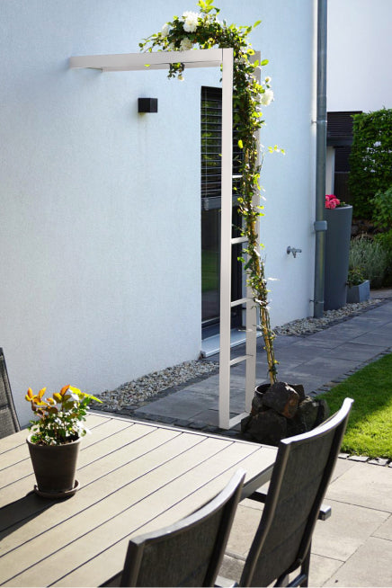 Ein Wandrosenbogen aus Metall bietet den Vorteil, dass er mit weniger Platz auskommt, als es bei klassischen, freistehenden Rosenbögen der Fall ist. Mit einem Wandrosenbogen von ELEO verleihen Sie selbst kleinen Gärten einen bezaubernden Charme. Gleichzeitig können Sie mit ihm Gartenbereiche voneinander abgrenzen und so für mehr Struktur sorgen.