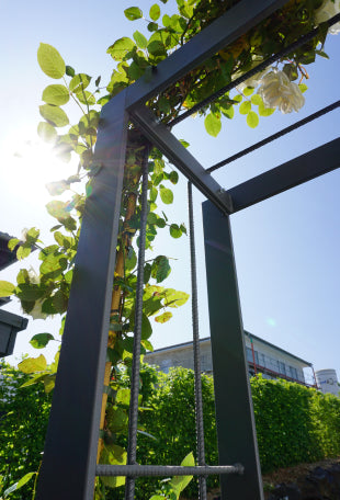 Neu im Sortiment sind unsere eckigen Wandrosenbögen. Diese bestechen mit einemmodernen Stil, der an das angesagte Industrial Design angelehnt ist. Ein Wandrosenbogen in eckig fügt sich besonders gut in eine moderne, geradlinige Gartengestaltung.