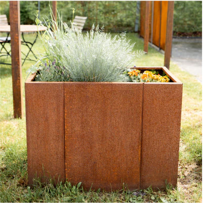 Ein Pflanzkübel aus Cortenstahl ist eine effektive Möglichkeit, Pflanzen modern in Szene zu setzen und ihnen gleichzeitig ein optimales Wachstum zu ermöglichen. Im Gegensatz zu Pflanzkübeln aus Kunststoff oder Ton punkten Cortenstahl-Pflanzkübel mit einer besonders hohen Langlebigkeit und Witterungsbeständigkeit –und einer sehr modernen, ausdrucksstarken Optik. Charakteristisch für Cortenstahl ist die Rostpatina, die sich in leuchtend orange-roten Farbnuancen ausbildet.