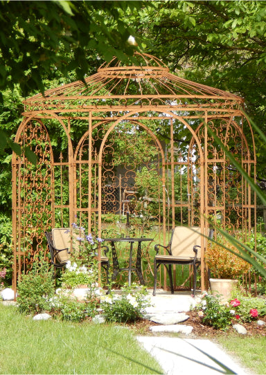 Die Rosenbögen von ELEO Garten verfügen über keine Endbeschichtung – dadurch setzt das Metall auf der Oberfläche sogenannten Edelrost an. Es entsteht eine antike Optik, die momentan sehr gefragt ist und im Trend liegt. Auf die Stabilität des Rosenbogens hat der Rost aber keinen Einfluss. Dank der massiven Bauweise trotzt der Metall-Rosenbogen Wind und Wetter zuverlässig; er bleibt über Jahre hinweg stabil.