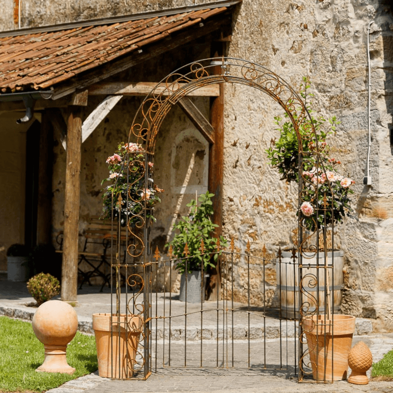 Das zurückhaltende, aber doch leicht verzierte Design des Rosenbogen Cosenza ergibt in jedem Garten ein Highlight.