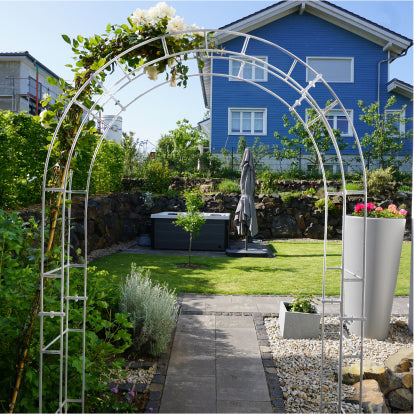 eine besonders hohe Stabilität aus und bestechen mit einer zeitlos schönen Optik. Dank der stabilen Bauweise und der verzinkten Oberfläche kann der Rosenbogen ganzjährig im Garten verbleiben – Wind und Wetter können ihm nichts
