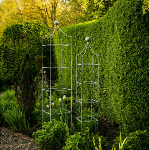 Wie hoch ein Rosenobelisk optimalerweise sein sollte, hängt von der Pflanze ab, die an ihm ranken soll. Unsere Rosenobelisken sind in verschiedenen Höhen und Designs erhältlich, sodass sie sowohl in kleineren als auch großen Blumenbeeten Platz finden. Suchen Sie sich Ihr Wunschmodell aus!