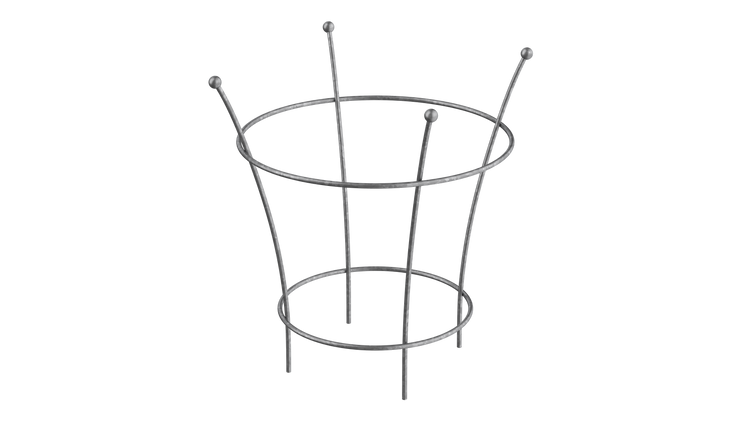 Pflanzstütze Arezzo in unbeschichtet als 3D-Modell Pflanzstütze Arezzo in feuerverzinkt in einem Garten mit Blumen